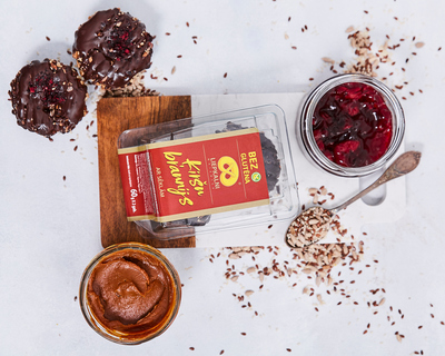 Sastāvdaļas: bezglutēna brauniju maisījums (cukurs, kakao pulveris, kartupeļu ciete, palmu eļļa, sūkalu pulveris, dekstroze, olu baltuma pulveris, irdinātāji E450, dzeramā soda, emulgators E471, sāls, biezinātājs E415), ķiršu pildījums (14%)(ķirši, cukurs, pārveidota ciete, biezinātājs želena sveķi, glikozes – fruktozes sīrups, skābe citronskābe), šokolādes krēms un šokolādes glazūra (cukurs, augu tauki (palmu eļļa, basijas kodolu eļļa), kakao pulveris, vājpiena pulveris, emulgators sojas lecitīns, aromatizētājs, pilnīgi hidrogenizēta palmu kodolu eļļa, emulgators saulespuķu lecitīns, aromatizētājs vanilīns), sēklu maisījums (saulespuķu sēklas, linsēklas, sezama sēklas), karamelizētā piena krēms (7%)(cukurs, vājpiena pulveris, palmu eļļa, biezinātājs kukurūzas ciete, stabilizētāji E401, E509, citrusaugļu šķiedrvielas), rapšu eļļa, olas, ķirši (saldējot žāvēti)