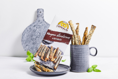 Kārtainās mīklas kraukšķīgi cepumi ar virsmai bagātīgi pārkaisītām magonēm.