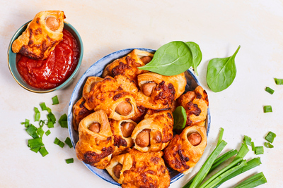 Mazi zeltaini kumosiņi braši dodas palīgā remdēt izsalkumu un dalīties priekā ar tevi dārza ballītē vai piknikā. Pildījumā cīsiņš. Pārklāti ar sieru.
