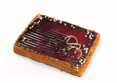 Medus, biskvīts, skābā krējuma krēms, dekorželeja.