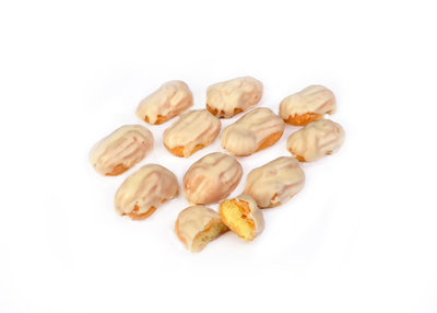 Пирожные из заварного теста, с наполнением сливочно/шоколадного крема, покрытые белым шоколадом