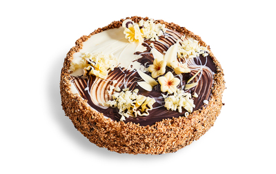 Шоколадный бисквит, начинка с манговым кремом и кусочками манго.